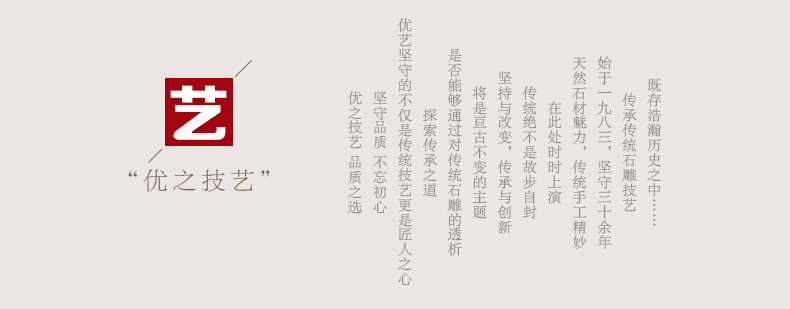 曲陽縣優藝園林雕塑有限公司是一家致力于城市雕塑及園林工程雕塑創意、設計、制作、安裝為一體的專業性雕塑工程公司。公司坐落于全國著名的雕刻之鄉——河北省保定市曲陽縣,為適應日益增長的客戶需求及高標準的工程定制項目,多位志同道合的傳統手工藝人合資組建本公司。