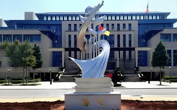 文化融合:從校訓(xùn)、吉祥物到地域特色,如“奮飛之翼”主題雕塑(某中學(xué)將校徽鳳凰元素抽象化,象征學(xué)子展翅)
